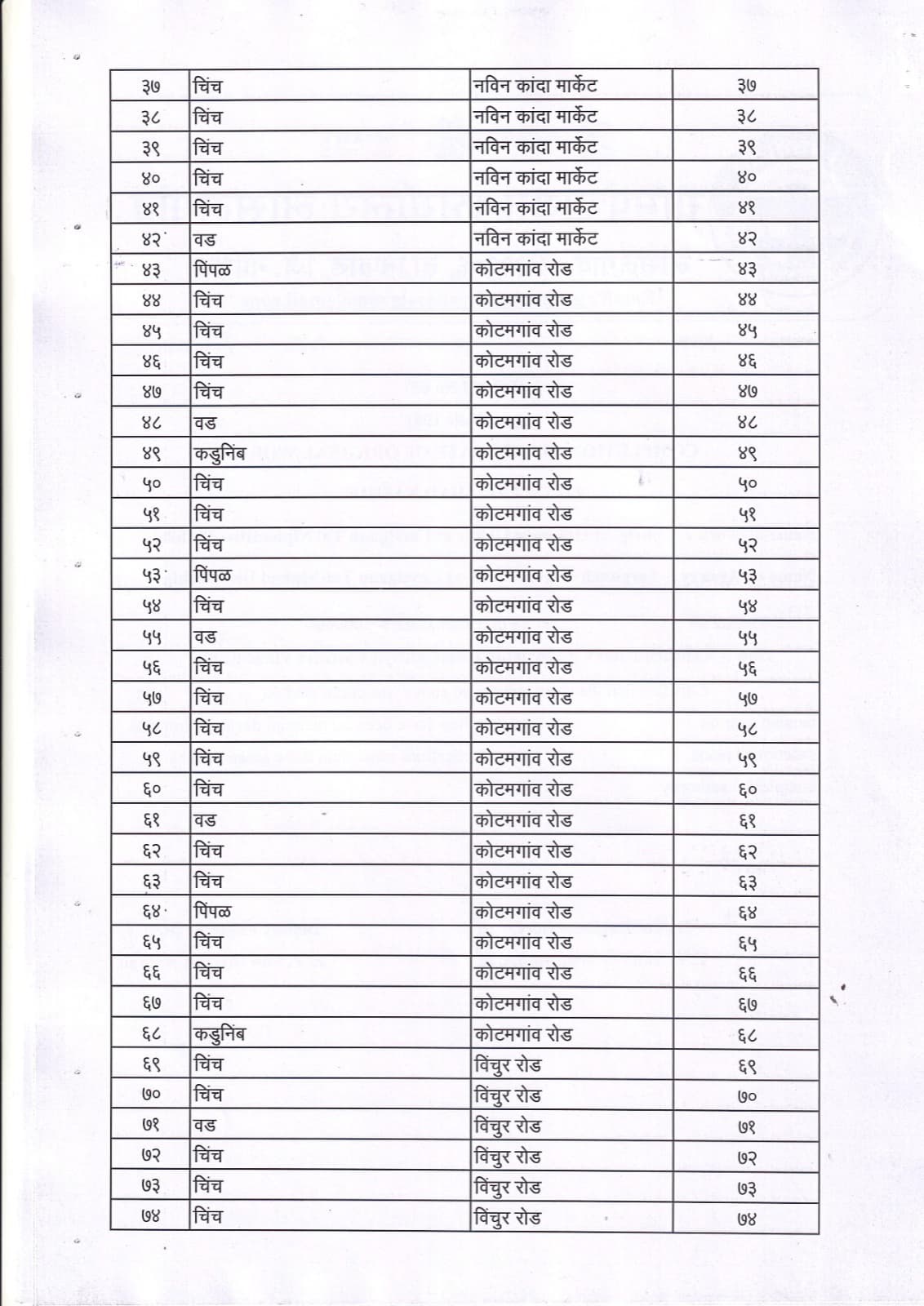 वृक्ष गणना नोंद व प्रसिद्ध यादी - 4